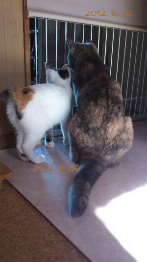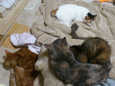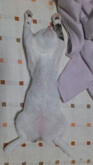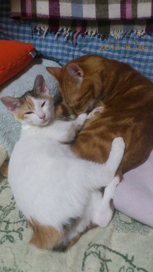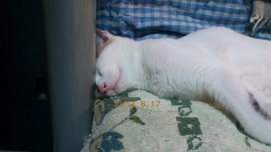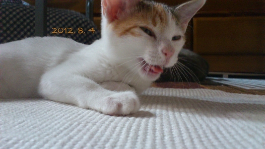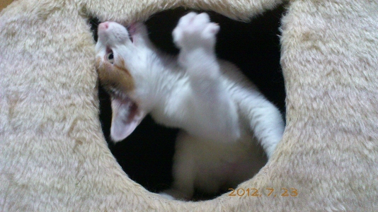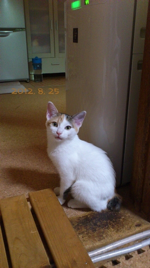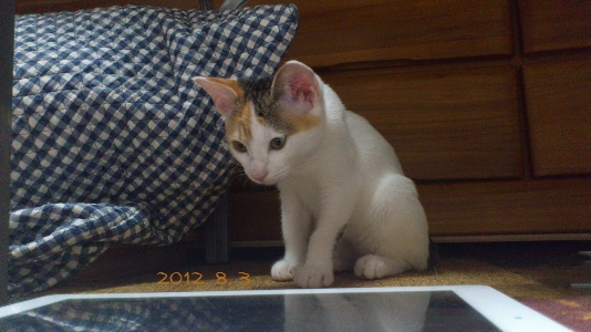 こんにちは、はじめまして! 2012年7月8日にさくらの家へやってきました。 名前はKanonだけど、 おかんには『豆台風』とか『ヒメ』とか 『白いアクマ』とか『チビ太』とか言われてます。 先輩ニャーたちやおかんが引くほどの暴れっぷりと食欲とはウラハラに、 結膜炎が治ったりブリ返したりして、まだちょっとおかんに心配かけてます。 部屋の中を走るのが大好きだから、ついラグをぐちゃぐちゃにしたり 茶碗を割っちゃったり、机の上の本を全部バラバラに落としちゃうこともあるんだけど おかんは苦笑いするだけで許してくれます。子ニャーの特権かしら、ウフフ。 でも、ゴハンのときはなぜだかいつもキャリーに閉じ込められて、 キャリーの中でゴハンを食べます。 他の先輩ニャーたちは外で自由に食べてるのに、ヘンなの・・・。 (それはアンタが自分の番まで待てずに他のコたちの分まで食べちゃう勢いだからよ! byおかん) そうそう。最近、新しい歯が生えてきたの! これで中々ガンコなキャリーのフタも開けられるかも・・・(ニヤリ これからもよろしくね! ≫つづきはコチラ |