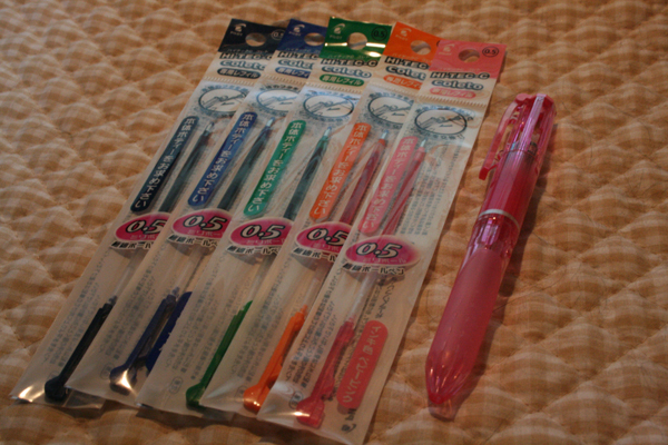 いつだったかにCMで見て ものすごく惹かれた文具です。 4色ぐらいのボールペンが1本になってるやつの 進化型というかカスタマイズ型なタイプです。 前職で、シャープペンと黒と赤のボールペンが 一体になったやつの便利さにハマって 今でもそれを使っています。 実は一昨日(木曜)にN駅に寄り道して帰ったとき、○ンズにも寄ったんですね。 でも結局CMで見つけた件のボールペンは見つけられなくて。 で、今日、○ンズで買い忘れたものを買うべく、 ここいらではちょっと大きい文具屋兼本屋へ行ったので、ちょっと探してみたです。 CMでやっていたのは、確かPILOT(写真のやつ)だと思うのですが、 売り場にはuniのも置いてありました。 ホントに色んな色があって、シャープペンも消しゴムもあったりして ワクワクしながら、あーでもないこーでもないと物色した挙句、 結局、オーソドックスな組み合わせに落ち着いたという体たらく(ガッカリ それでも、黒じゃなくてブルーブラックにしているところは、ちょっとした抵抗です(笑) 余談だけれど、ワシ、黒よりは断然ブルーブラック派です。黒は硬い感じがしてイヤ。 さて、このペン。 入れ物は5色用、4色用、3色用、2色用(売り場にはなかった)とあります。 ワシが買ったのは5色用で250円ぐらい。リフィルは1本100円です。 カバンに入れて持ち歩こっと♪(手帳用にするの) ついったでもボソボソ喋りましたが、 ここんとこ会社で、ちょっとしたうねりのようなものに巻き込まれていて、 それが、自分の中ではもう諦めていたことの1つだったので、 何だかとても嬉しい反面、怖い気持ちがあって、戸惑っています。 それでも、取り敢えずは、今目の前にあることをちゃんと頑張ろうかなって思ってます。 前頭葉から物凄く頑張って絞り出して作ったものを『美しい』『楽しい』と言われると 涙がジワジワ出てくるぐらい嬉しいです。 ともあれ、ガンバリマス☆ |